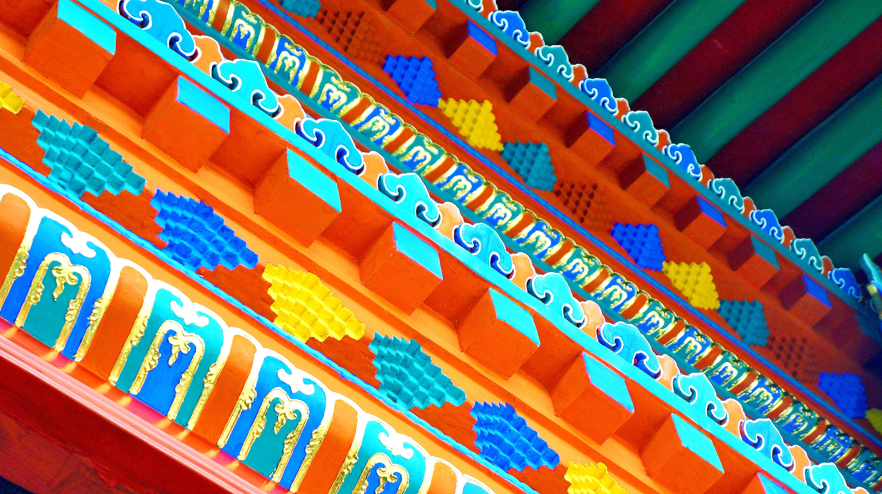 - Asian_Temple, Chinese_Architecture, Colorful_Interior, Cultural_Heritage, Intricate_Wall_Patterns, Religious_Site, Vibrant_Tile_Designs