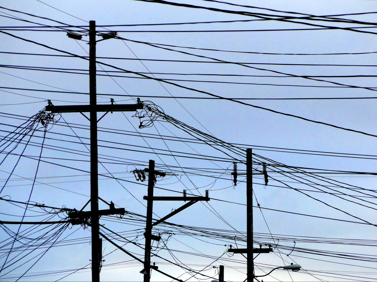 This image captures a quintessential scene of urban life, showcasing the complex network that powers our cities. The numerous power lines and utility poles, running in multiple directions, represent the intricate web that keeps our communities connected and illuminated. This snapshot serves as a reminder of the unseen infrastructure that underpins our daily lives.