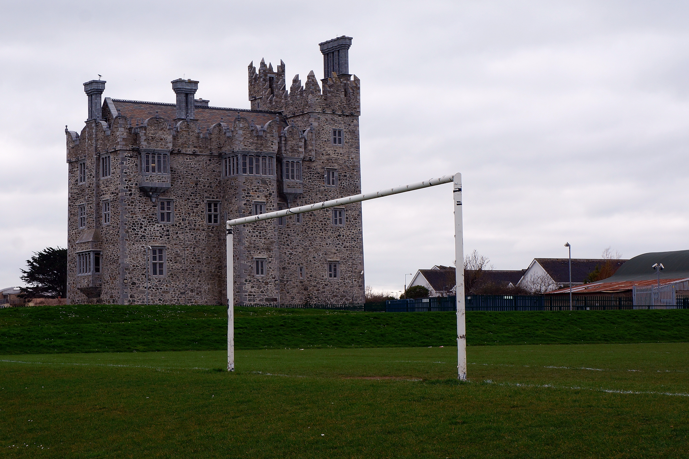 - Athletic_Area, Castle_In_Background, Daylight_Lighting, Football, Goalpost, Open_Space, Outdoor_Field, Soccer_Goal, Sports_Field, Stone_Building