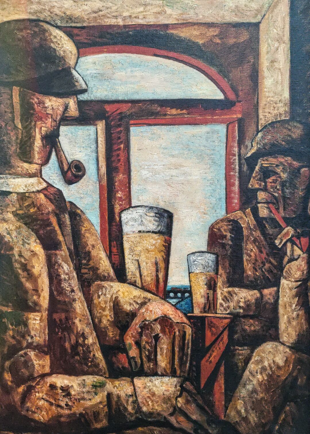 A painting capturing a moment of camaraderie in a Parisian cafe.