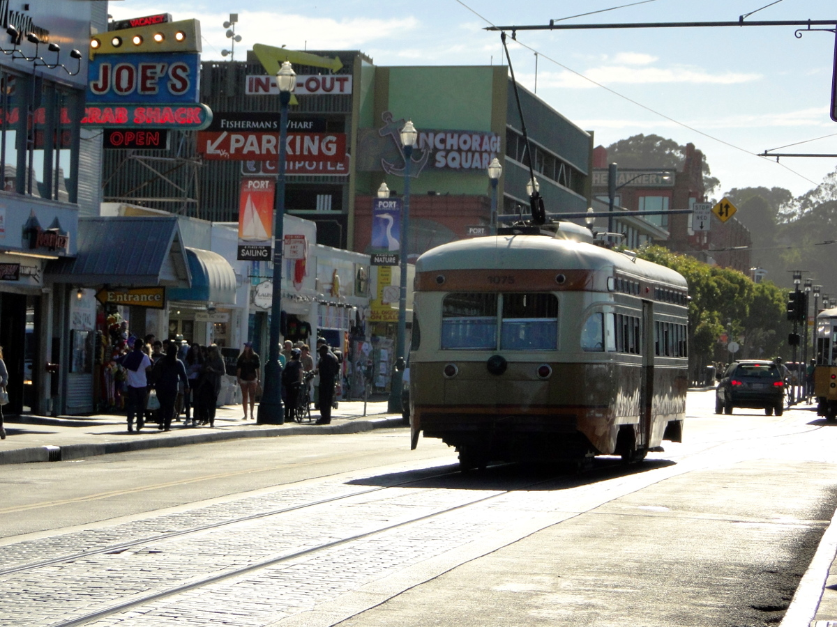 - Cityscape, Daytime, Moving, People, Street, Train, Transportation, Travel, Trolley, Urban, Vintage